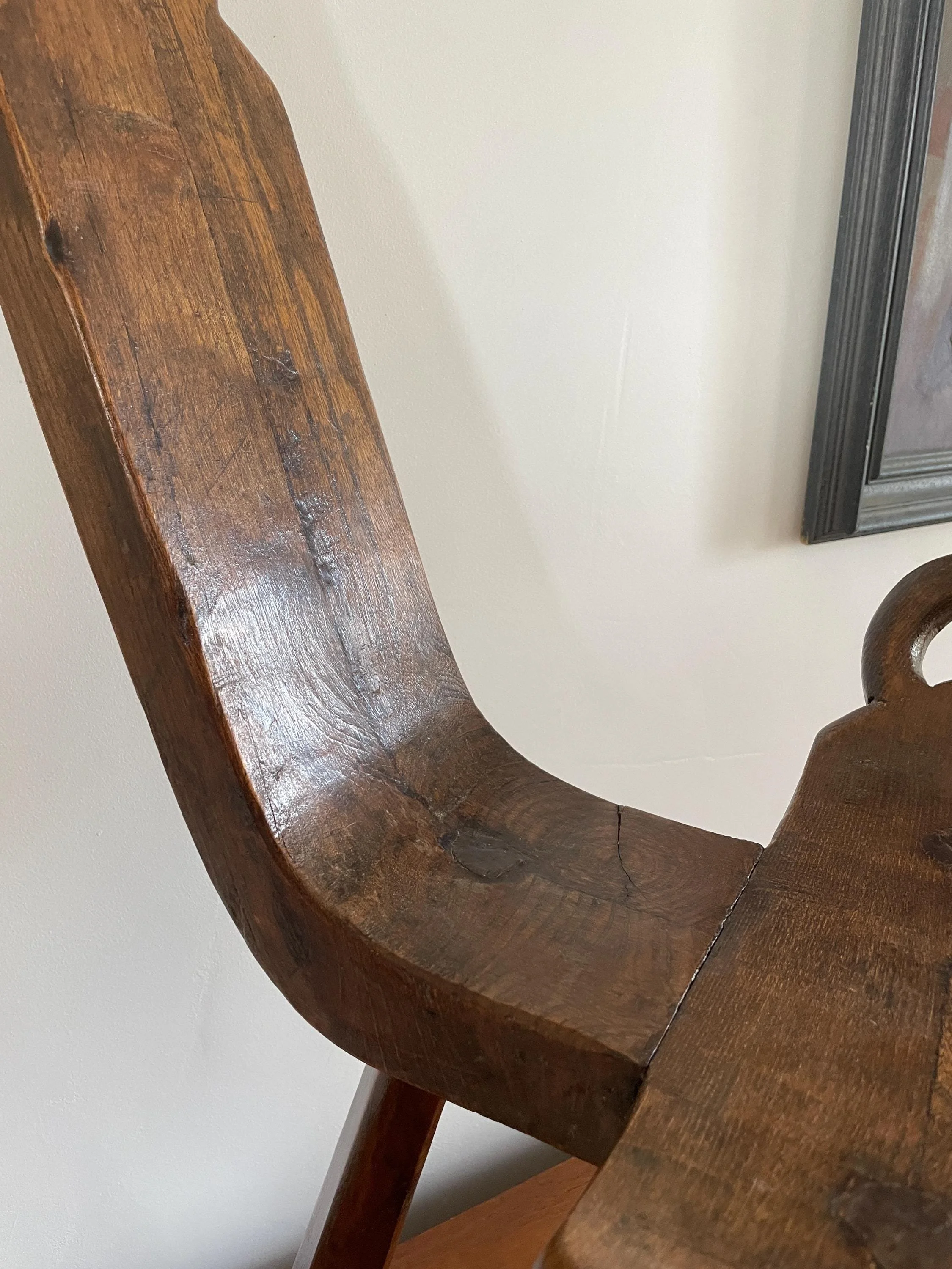 Shop › An unusual vintage Brutalist oak stool Image 1 of 7 Image 2 of 7 Image 3 of 7 Image 4 of 7 Image 5 of 7 Image 6 of 7 Image 7 of 7 An unusual vintage Brutalist oak stool £150.00 sold out An unusual vintage Brutalist stool / birthing chair in the primitive style. A very unique item!74cm high49cm wide Sold Out Added! An unusual vintage Brutalist stool / birthing chair in the primitive style. A very unique item!74cm high49cm wide