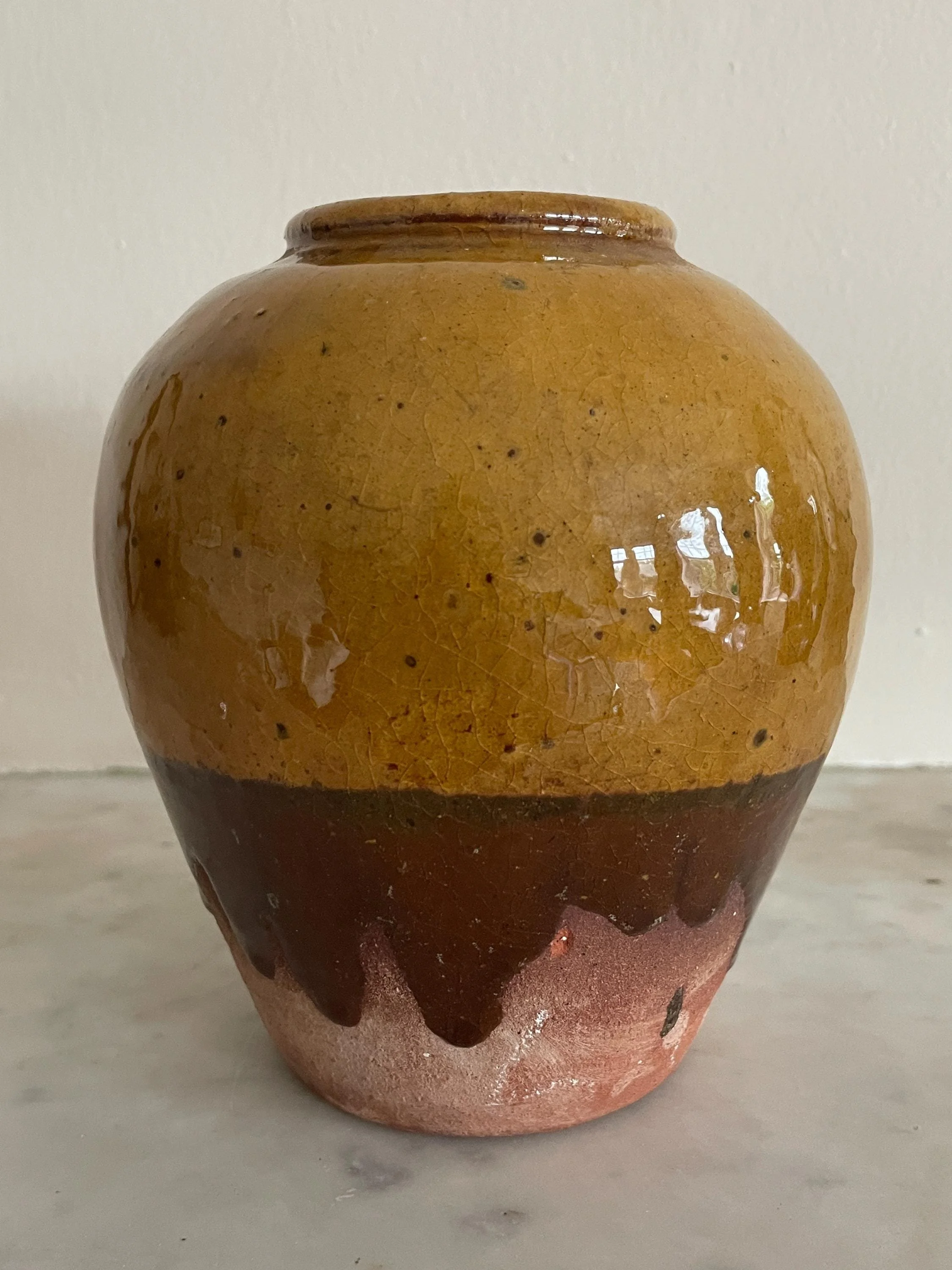 Shop › Half Glazed Terracotta Vase: Mustard & Burnt Sienna Image 1 of 4 Image 2 of 4 Image 3 of 4 Image 4 of 4 Half Glazed Terracotta Vase: Mustard & Burnt Sienna £35.00 sold out A beautiful partial glazed terracotta vase of baluster form. With mustard and burnt sienna glaze. 15.5cm high Sold Out Added! A beautiful partial glazed terracotta vase of baluster form. With mustard and burnt sienna glaze. 15.5cm high